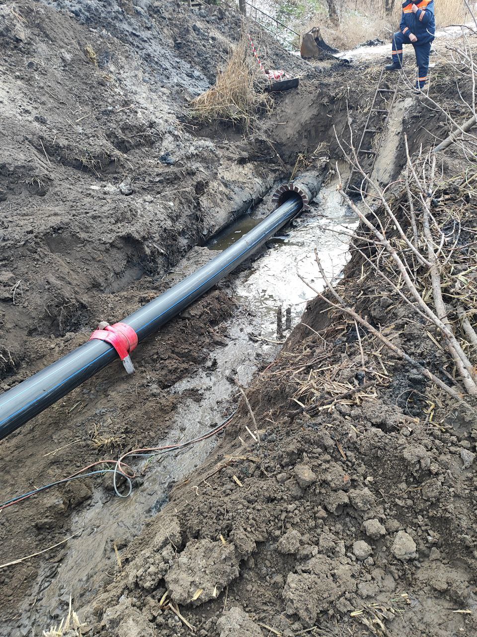 Прокладена нова поліетиленова труба Д315 мм у старій сталевій Д530 мм. Нової труби буде достатньо для існуючих потреб.
