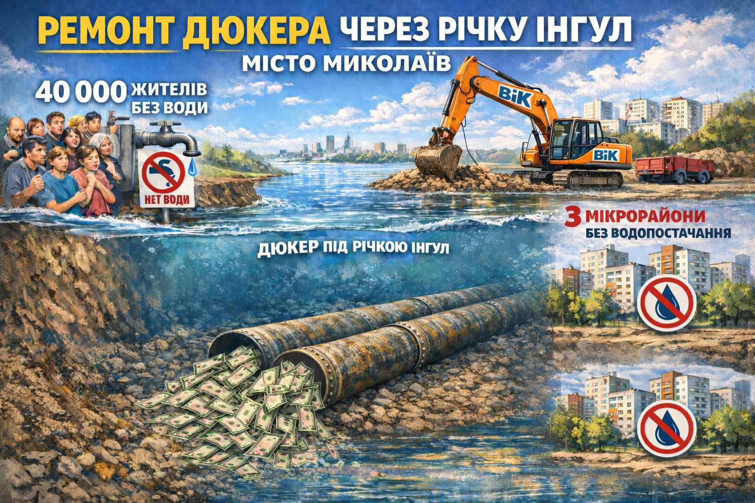 Водопостачання мікрорайонів Соляні, Північний, Тернівка відновлено. Бригади Компанія "ВіК" і Миколаївводоканалу спрацювали швидко і професійно