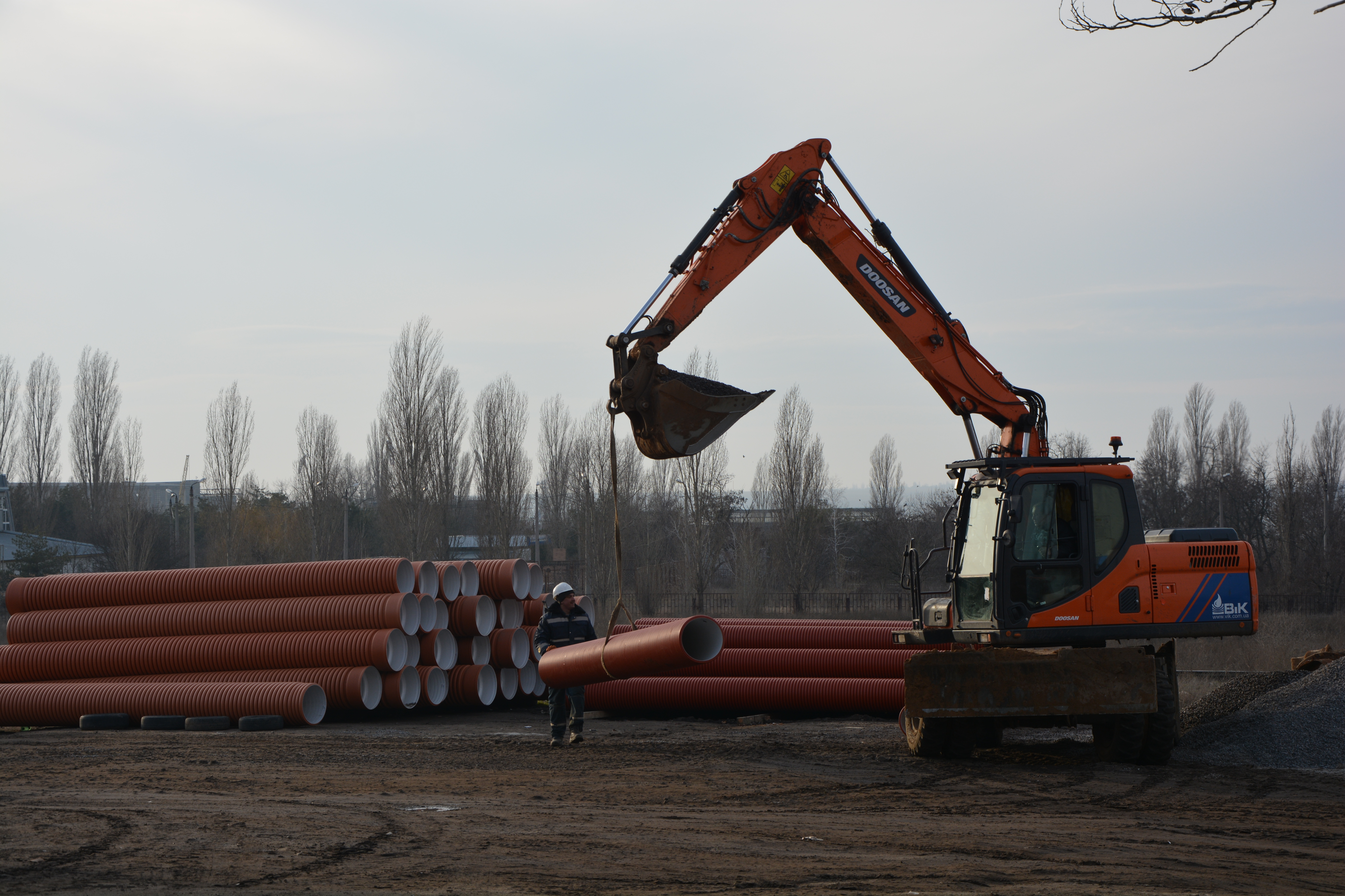 В настоящее время заменено почти 800 м из 1200 м запроектированной сети. Работы по укладке полипропиленовых двухслойных труб усложняются наличием большого количества инженерных сетей, не отраженных в проектной документации, а также погодными условиями. К тому же строительство коллектора происходит с постоянной перекачкой сточных вод, то есть без отключения абонентов от услуг сетей водоотвода.